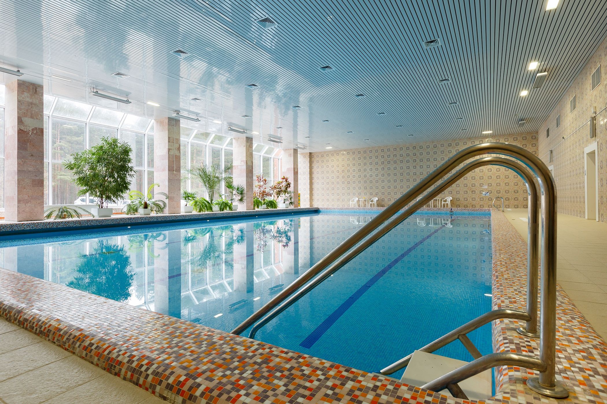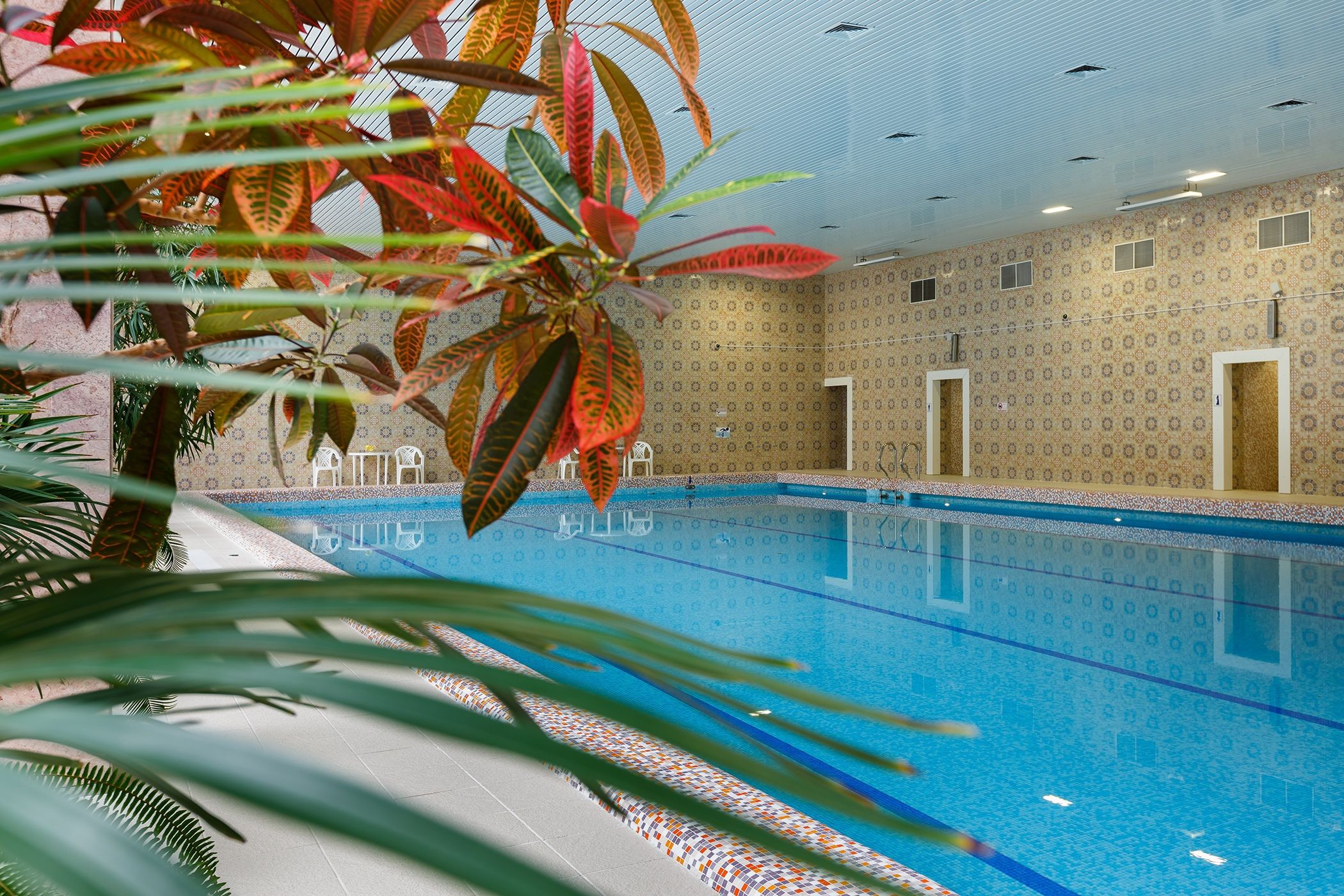 • длина бассейна - 22 м, ширина - 12.5 м, глубина - от 1.13 м до 1.51 м, температура воды - 29⁰с
