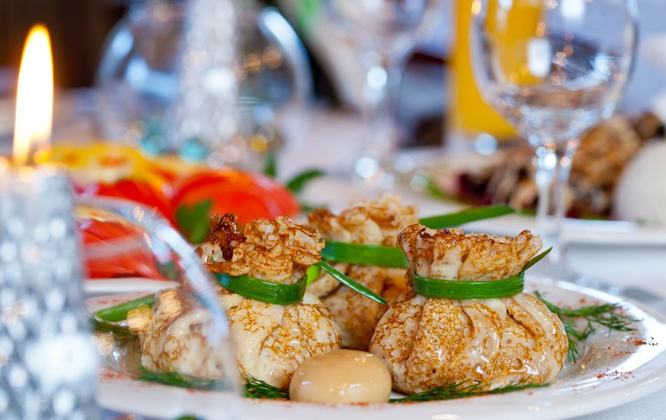 Меню ресторана олицетворяет его философию - сохранение кулинарных традиций, использование натуральных продуктов и эко-дружественность. В ресторане наши гости могут насладиться напитками из свежих ягод, различными закусками, включая маринованные грибы, свежие овощи, блинчики, изысканные рыбные и мясные блюда. Бар ресторана предлагает широкий ассортимент напитков на любой вкус.