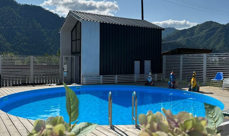 • с шезлонгами и зонтиками, вода  пресная, подогреваемый, пользование бассейном входит в стоимость, работает сезонно